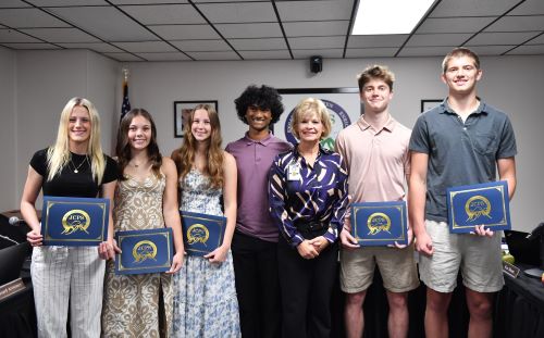 The six students are Mihin DeSilva, Kaitlyn Helt, Gracie-Lee Irons, Isabelle Joiner, Ace Prenger and Custer Prenger.