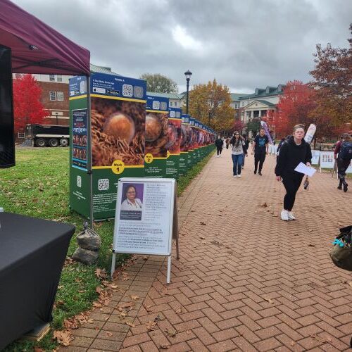 The walkway from the fountain to Blue Ridge Dorm had large and graphic displays of fetuses and information on mortality rates of mothers during pregnancy. Many WCU students were commenting on the posters.