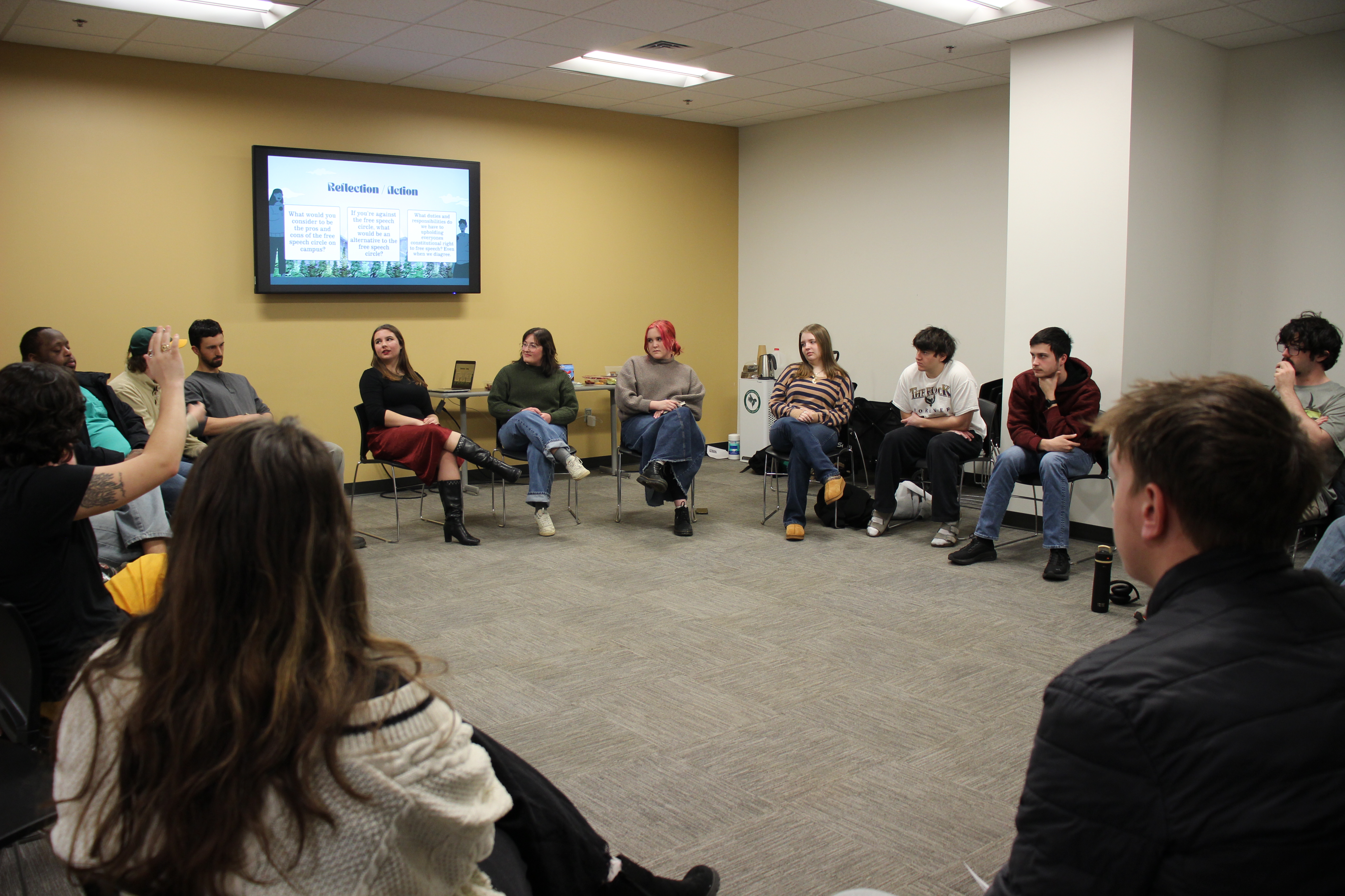Stella Chumney, a communication student and student ambassador, opened the first civic dialogue this year with a discussion on free speech.